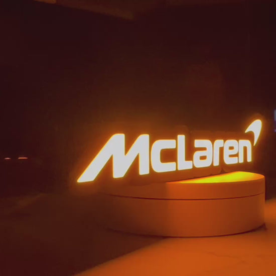 McLaren inspired LED light box with a bold orange illuminated finish. Ideal for a garage, man cave, office, bedroom or car-themed setup.